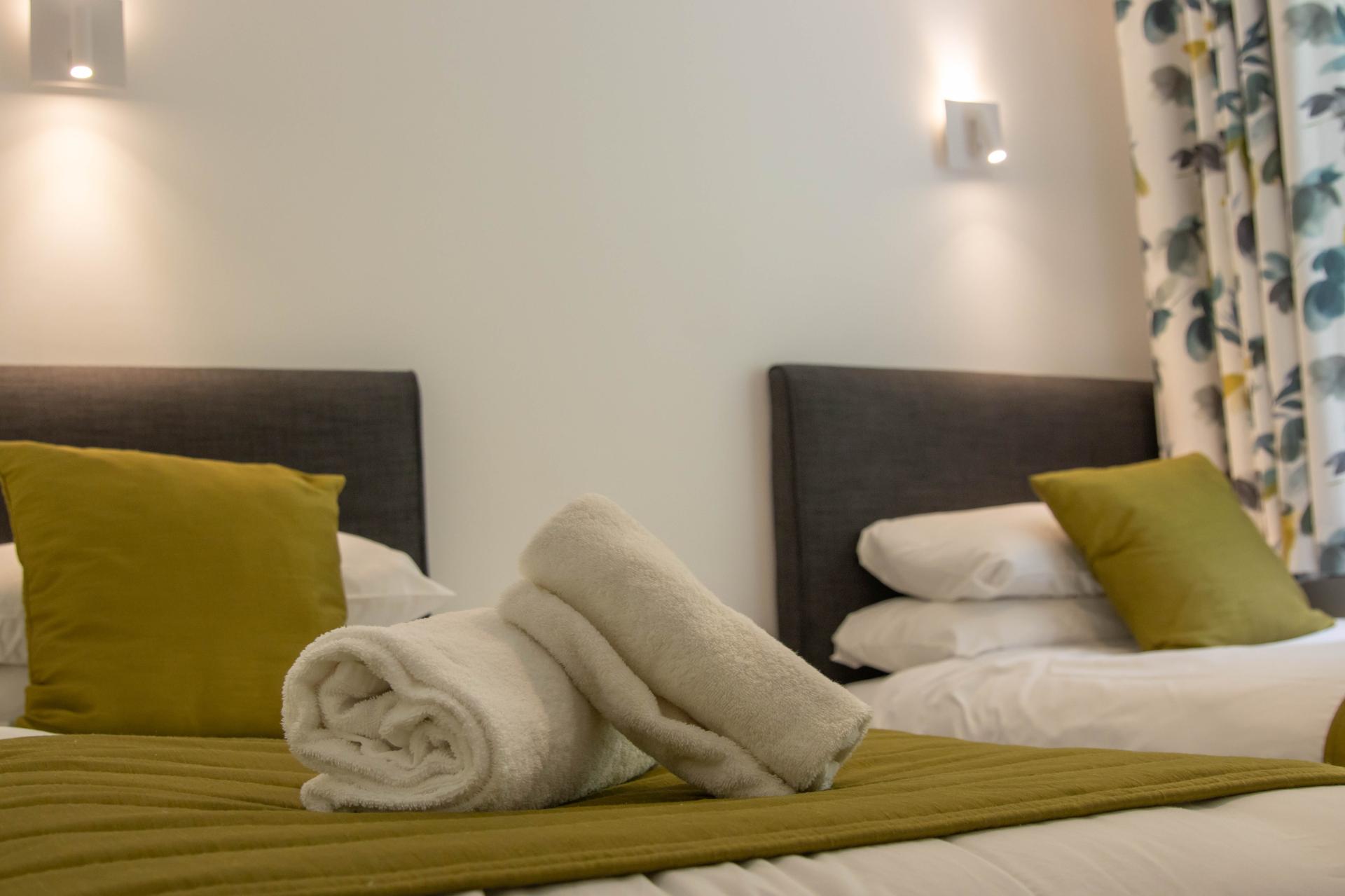 Relax in our Log Cabin 2 bedroom (4 adults). - Bedroom 1 Private bathroom / not en-suite, Ground Floor (1 x Double Bed) - Bedroom 2 Private bathroom / not en-suite, Ground Floor (2 x Single Beds).